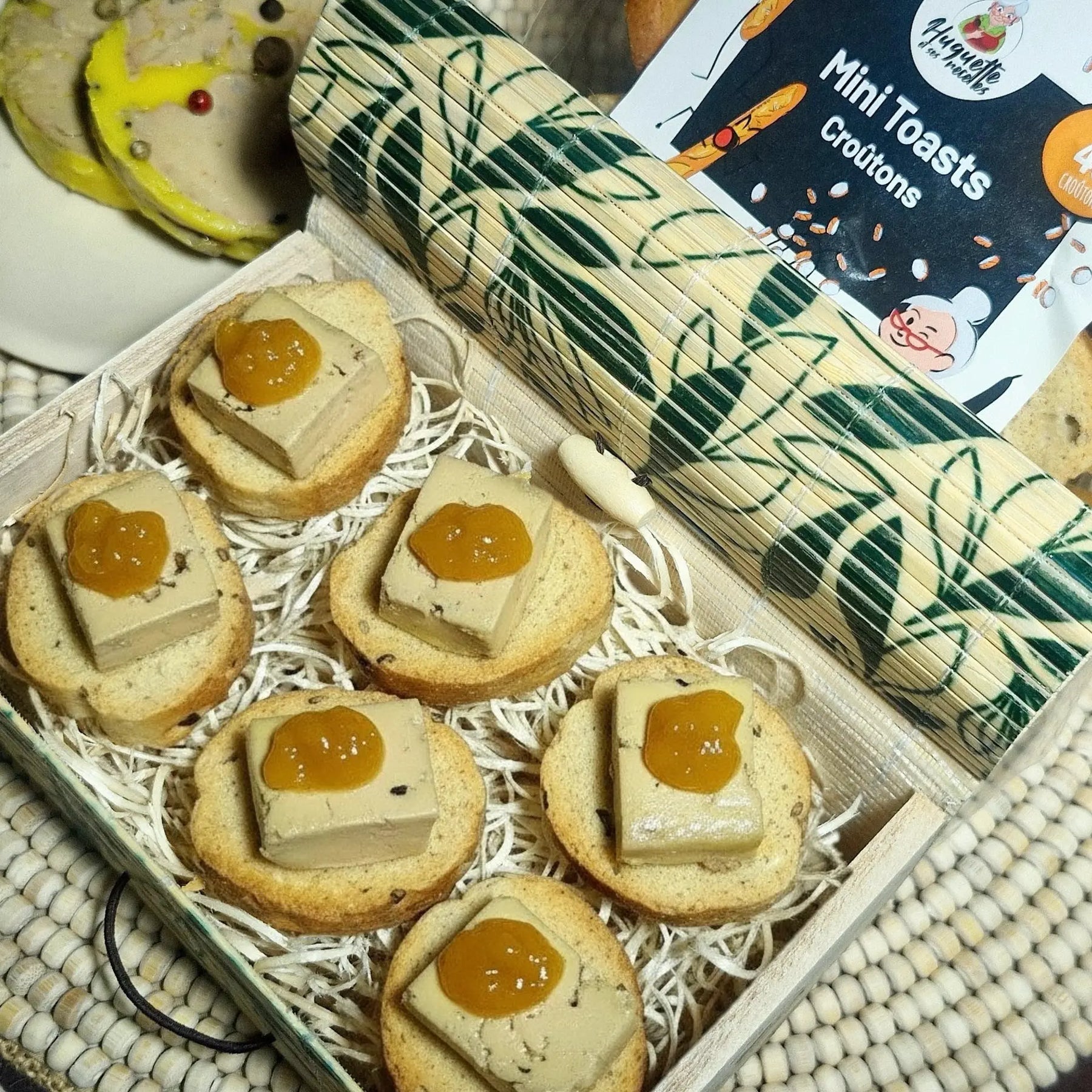 Ces croûtons mini toasts bios de Provence, de 150 g, sont spécialement conçus pour accompagner le foie gras. Fabriqués à partir de farine de froment française et d’un mélange de céréales sélectionnées, ils offrent une texture croustillante et un goût authentique. Leur composition intègre des ingrédients naturels tels que l’huile de tournesol, le seigle, l’orge et le soja, ce qui garantit une saveur riche et équilibrée. Parfaits pour sublimer vos dégustations, ces toasts apportent une base idéale pour mettre en valeur la finesse du foie gras.