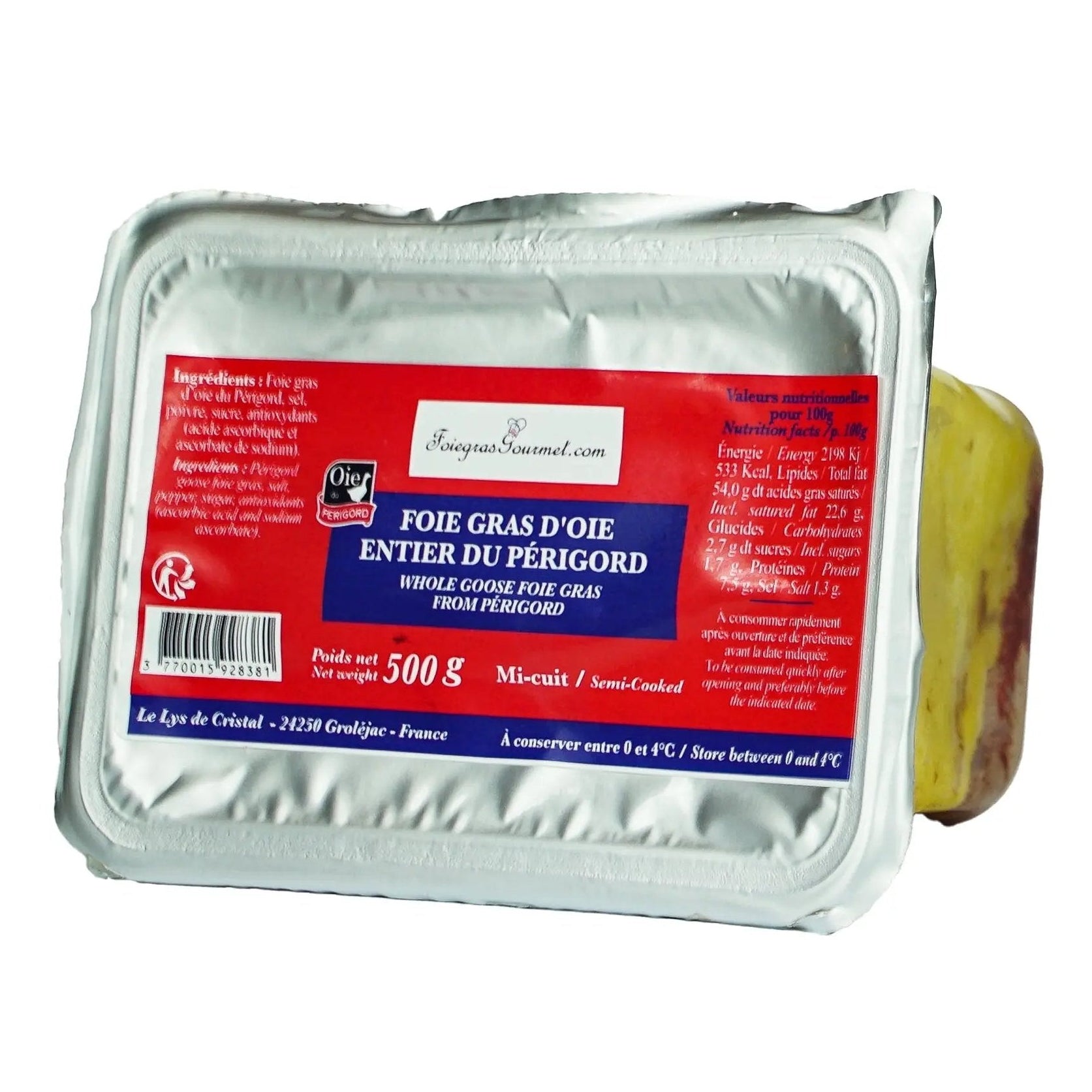 The whole semi-cooked goose foie gras from the Southwest 500 g offers a delicate texture and a refined taste typical of Périgord and made from local free-range geese.