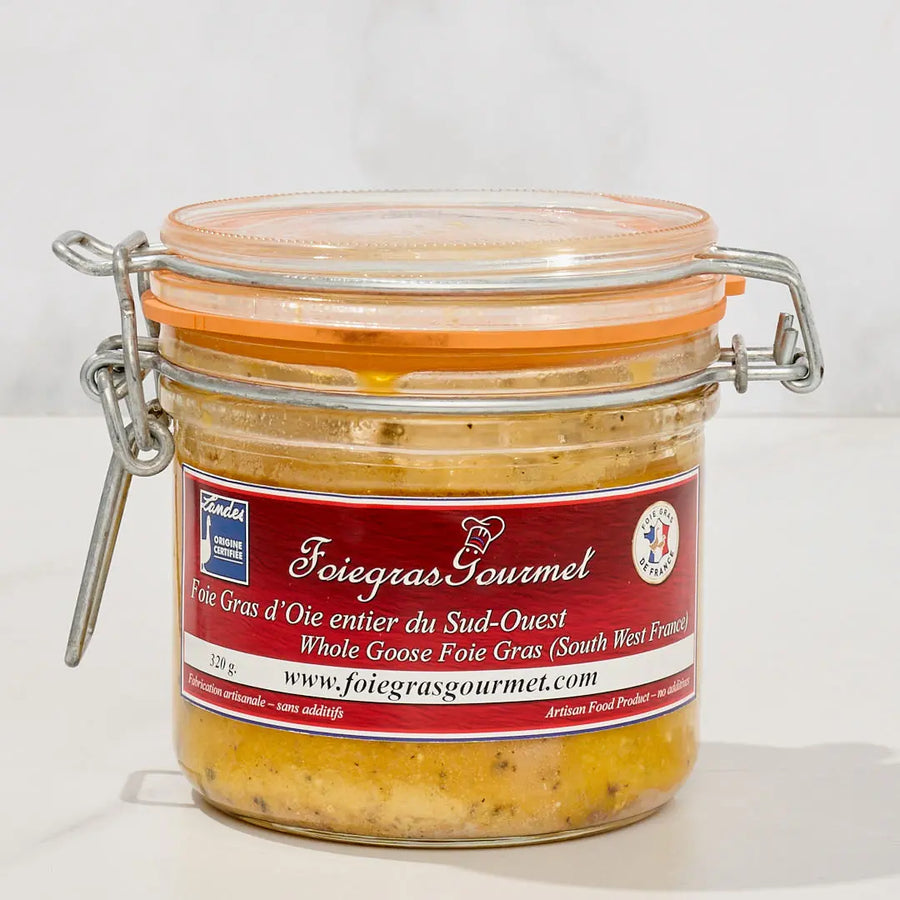 Per assicurarci di offrire un foie gras d’oca davvero sopraffino, abbiamo scelto il foie gras Grolière di Perigord. Il foie gras Grolière d’oca è un piacere burroso e gustoso su un toast caldo. Il foie gras d’oca di Groliere è una coccola deliziosa per quelle occasioni speciali come il Natale e il Capodanno.